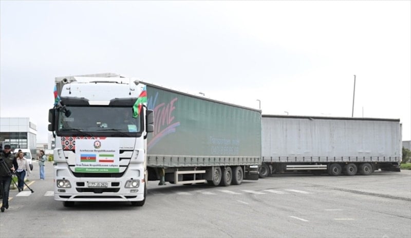 Azerbaycan, İran'a yeniden gıda ve ilaç malzemelerinden oluşan 10 tır insani yardım gönderdi.
