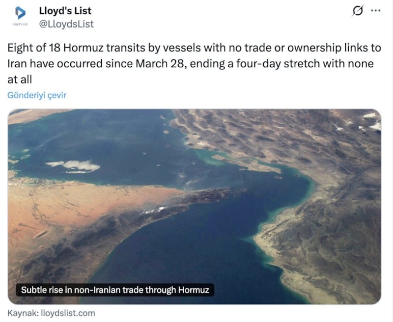 Küresel ticaret ve enerji için önemli bir rota olan Hürmüz Boğazı'ndan geçen gemi trafiği, ABD ve İsrail'in geçen ayın sonlarında İran'a yönelik saldırılarından bu yana büyük ölçüde aksadı; bu saldırılar üzerine Tahran, en az altı Körfez ülkesindeki ABD bağlantılı üslere saldırılar düzenleyerek misilleme yaptı.