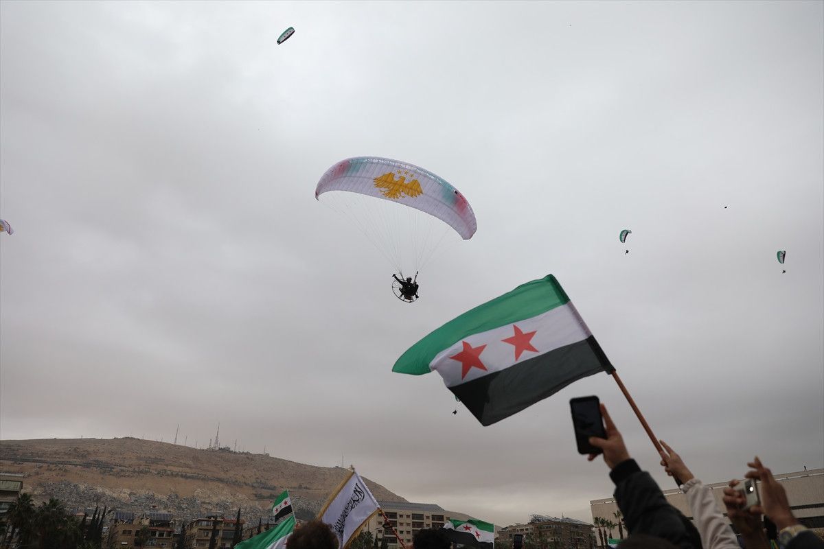 Kutlamalar kapsamında başkentteki Emevi Meydanı’nda paramotor gösterisi düzenlendi.