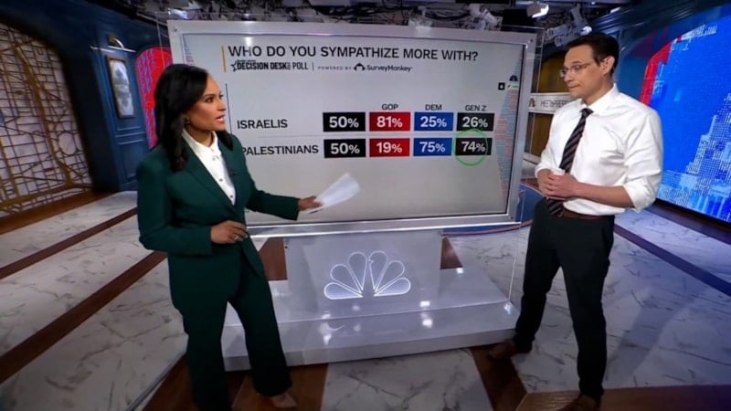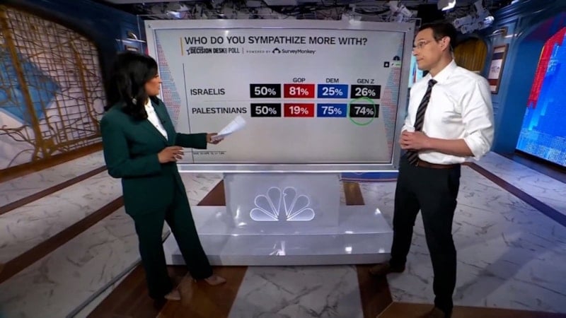 Amerikan merkezli televizyon kanalı NBC’de yayımlanan bir ankete göre, ABD’li Z kuşağının yüzde 74’ü İsrail yerine Filistin’e sempati duyuyor.