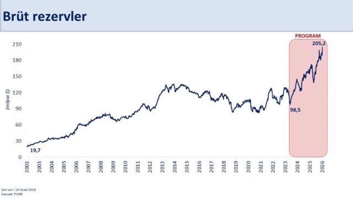 Brüt rezervler yaklaşık 107 milyar dolar artarak 205,2 milyar dolara ulaştı.
