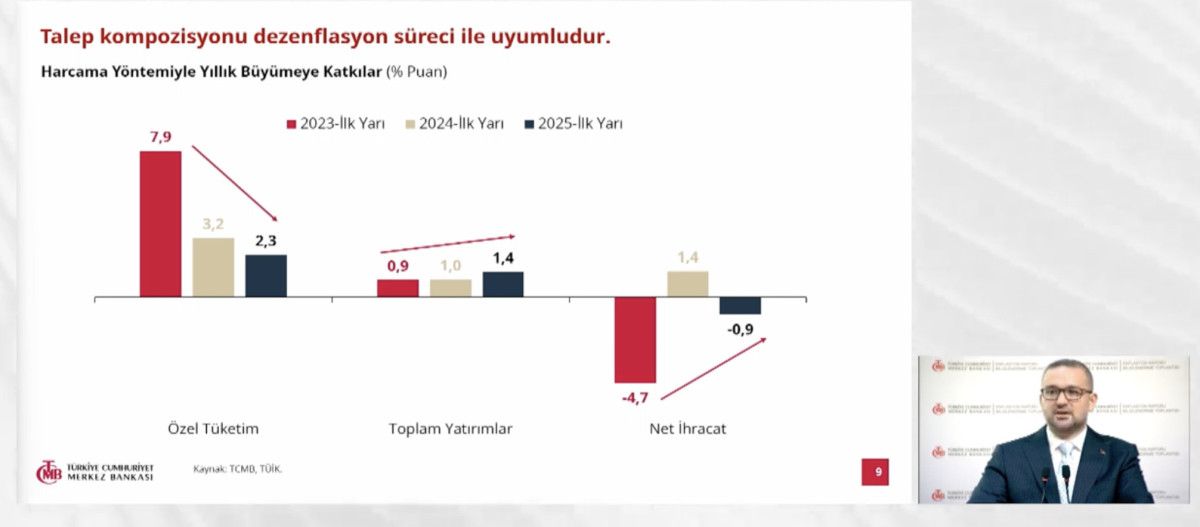 Karahan, enflasyon tahminlerini; 2025 yıl sonu için yüzde 24, 2026 yılı sonu için yüzde 16, 2027 yılı sonu için yüzde 9 ve orta vadede nihai hedefi yüzde 5 olarak açıkladı.