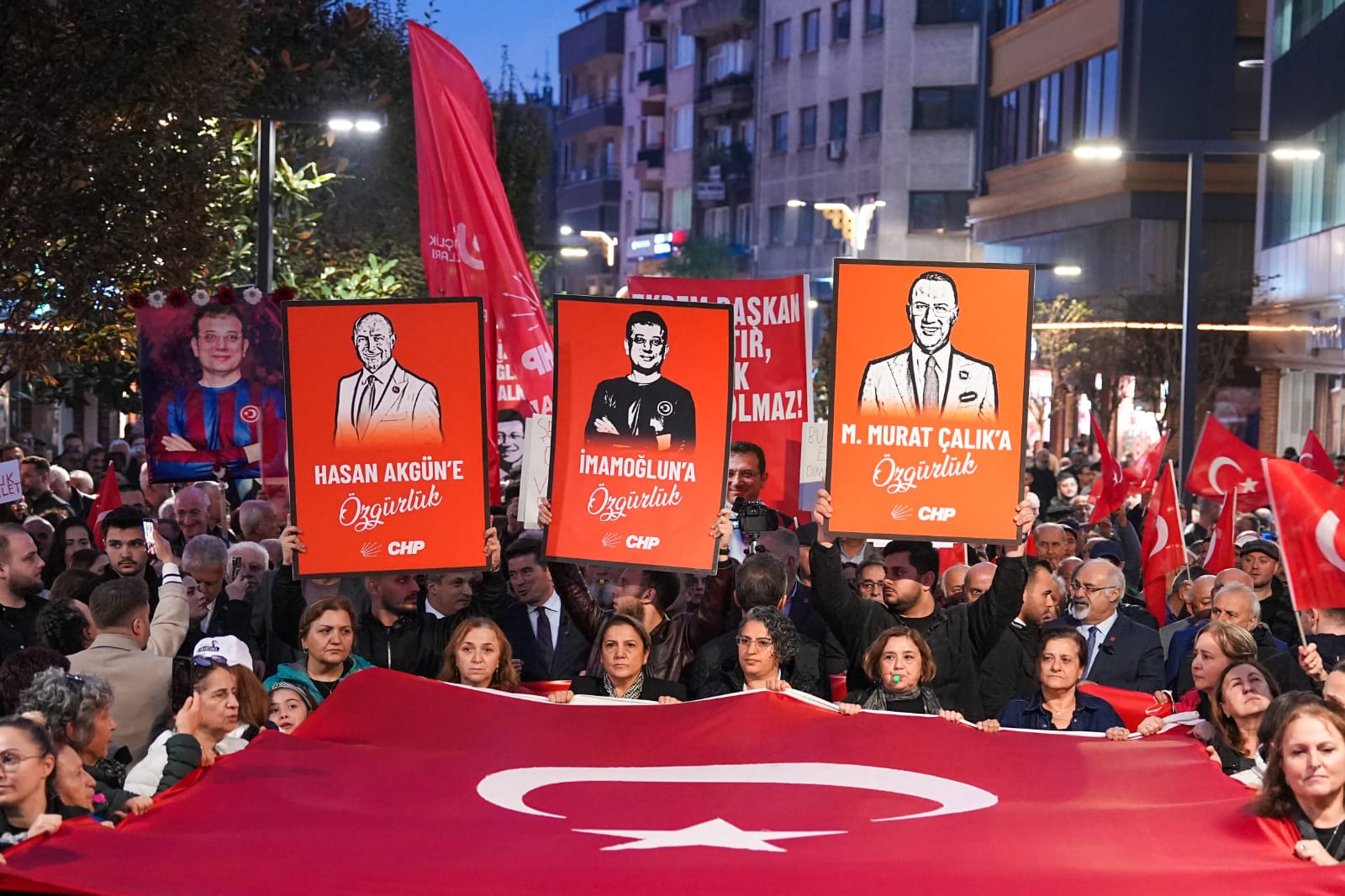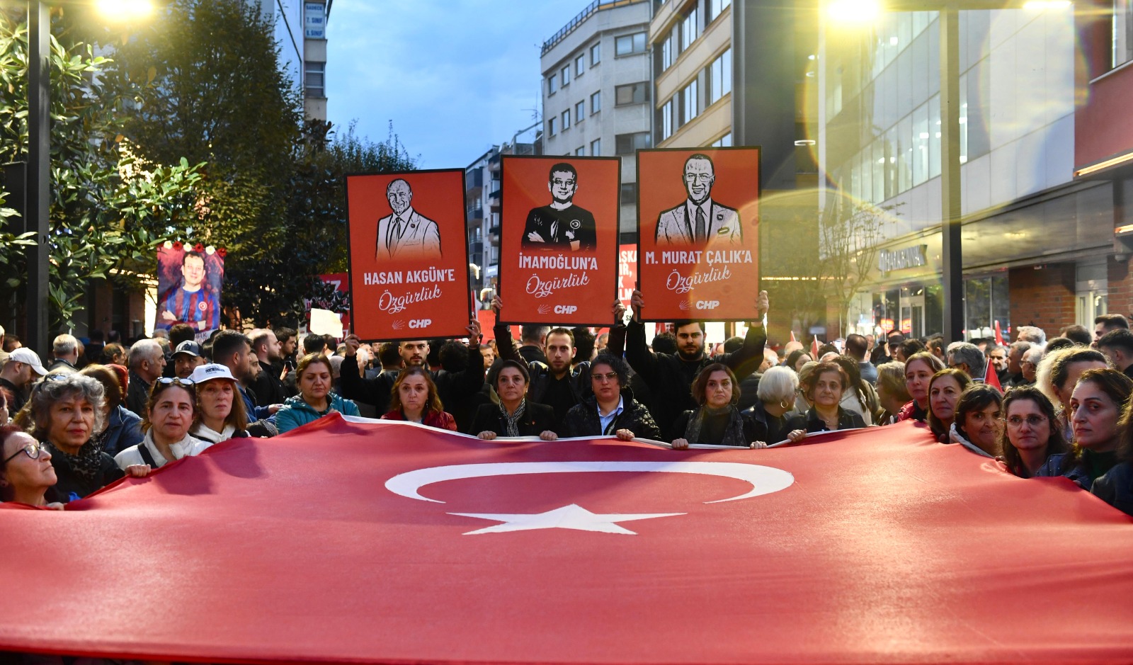 CHP Trabzon İl Başkanlığı, tutuklu Cumhurbaşkanı Adayı Ekrem İmamoğlu hakkında hazırlanan iddianameyi protesto etmek amacıyla “Demokrasiye Yürüyüşü” düzenledi.