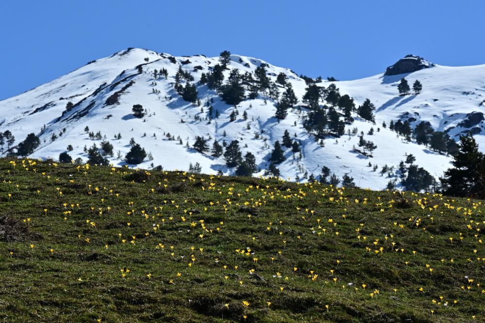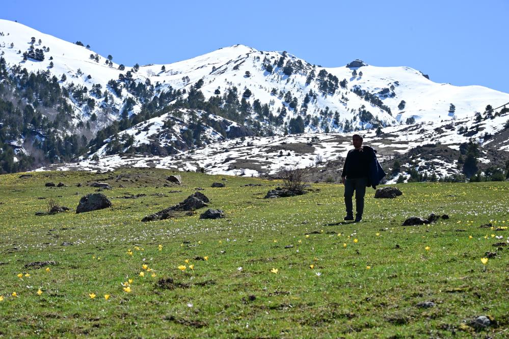 Bölgenin yüksek kesimlerinde kışın izleri olan kar kütleleri henüz tam olarak erimemişken, Musalla Vadisi boydan boya sarı ve mor renkli çiğdem çiçekleriyle kaplandı.