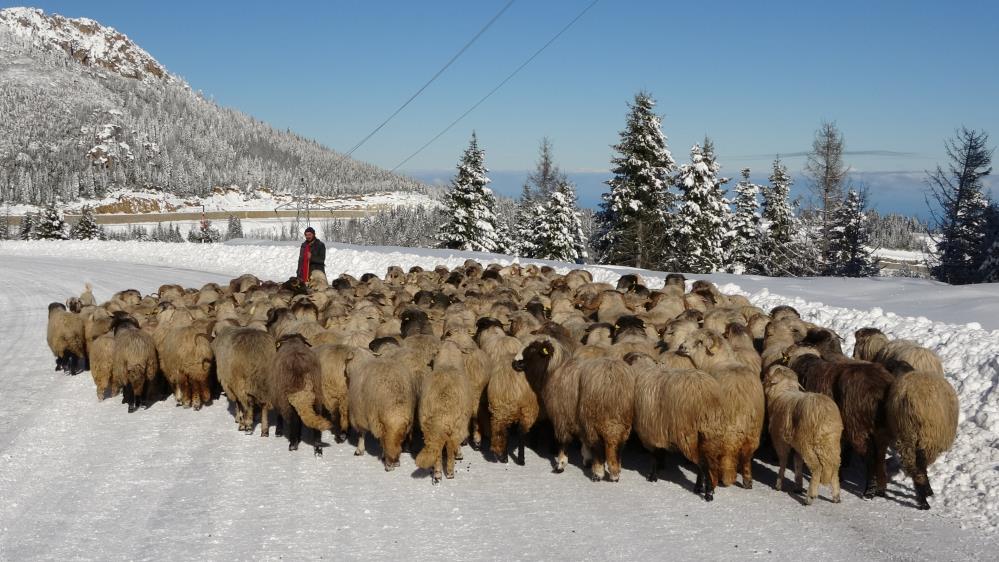 Kar yağışının ardından hava sıcaklıklarının eksi derecelere düşmesi, koyun besicilerini de harekete geçirdi. İlkbahar aylarında yaylaya çıkan koyun besicileri, dönüş yoluna geçti. Karların arasında dönüş yoluna geçen koyunlar, güzel görüntüler oluşturdu.