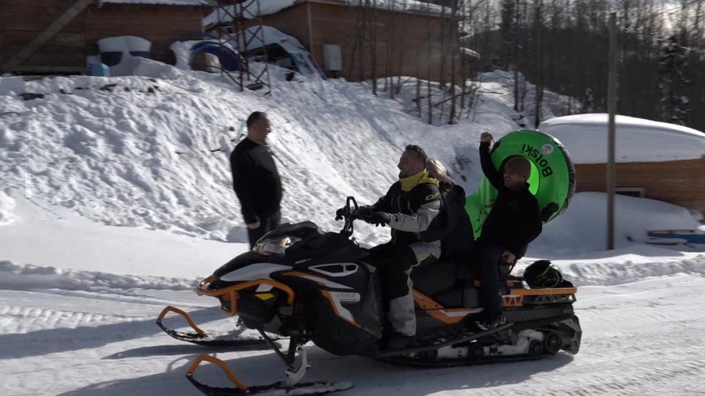 Rusya'dan Handüzü Yaylası'na snowboard yapmak için geldi