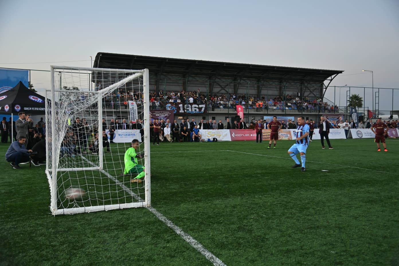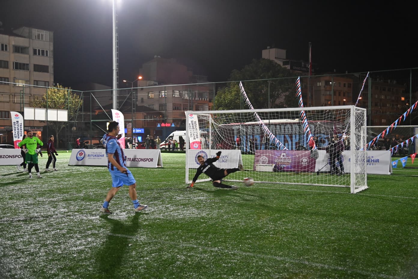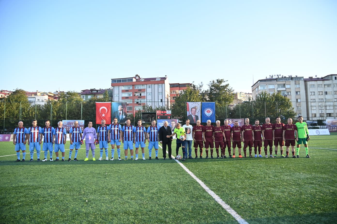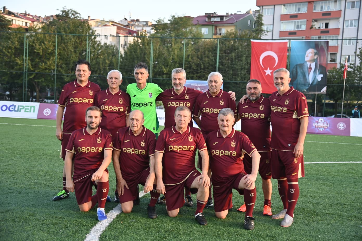 Trabzon Büyükşehir Belediyesi’nin ev sahipliğinde, Emir Yuşa Atıcı anısına düzenlenen “Efsanelerle Yeniden” futbol turnuvası, Faroz Futbol Sahası’nda oynanan efsaneler ve şöhretler maçlarıyla sona erdi. Spor camiasını ve vatandaşları bir araya getiren etkinlikte, dostluk ve hatıralar bir kez daha yeşil sahada buluştu. Turnuvanın ilk bölümünde oynanan ‘Şöhretler Maçı’nda bordo takım ile çizgili takım karşı karşıya geldi. Normal süresi 6-6 berabere biten heyecan dolu mücadelede, Trabzon Büyükşehir Belediye Başkanı Ahmet Metin Genç’in de gol attığı çizgili takım, penaltılarda 9-6’lık skorla sahadan galip ayrıldı. Final karşılaşmasında ise yine bordo takım ile çizgili takım kozlarını paylaştı. Büyük çekişmeye sahne olan maç 4-4 beraberlikle tamamlandı, penaltı atışlarında bu kez bordo takım 9-8’lik skorla şampiyonluğa ulaştı.