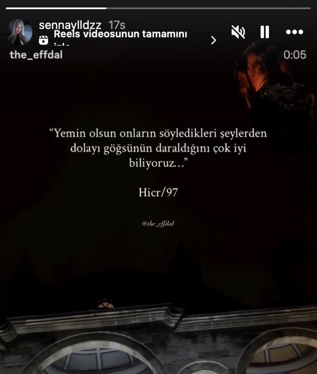 Yıldız paylaşımında Hicr Suresi 97. ayete yer verdi. Paylaşımda, "Yemin olsun onların söyledikleri şeylerden dolayı göğsünün daraldığını çok iyi biliyoruz..." ifadeleri yer aldı.