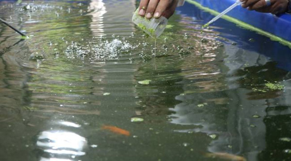 Bu besinin kuru ve yaş haliyle beslenen Japon balıklarının gübresi de başka bir havuzdaki çilek fidelerine aktarılıyor.